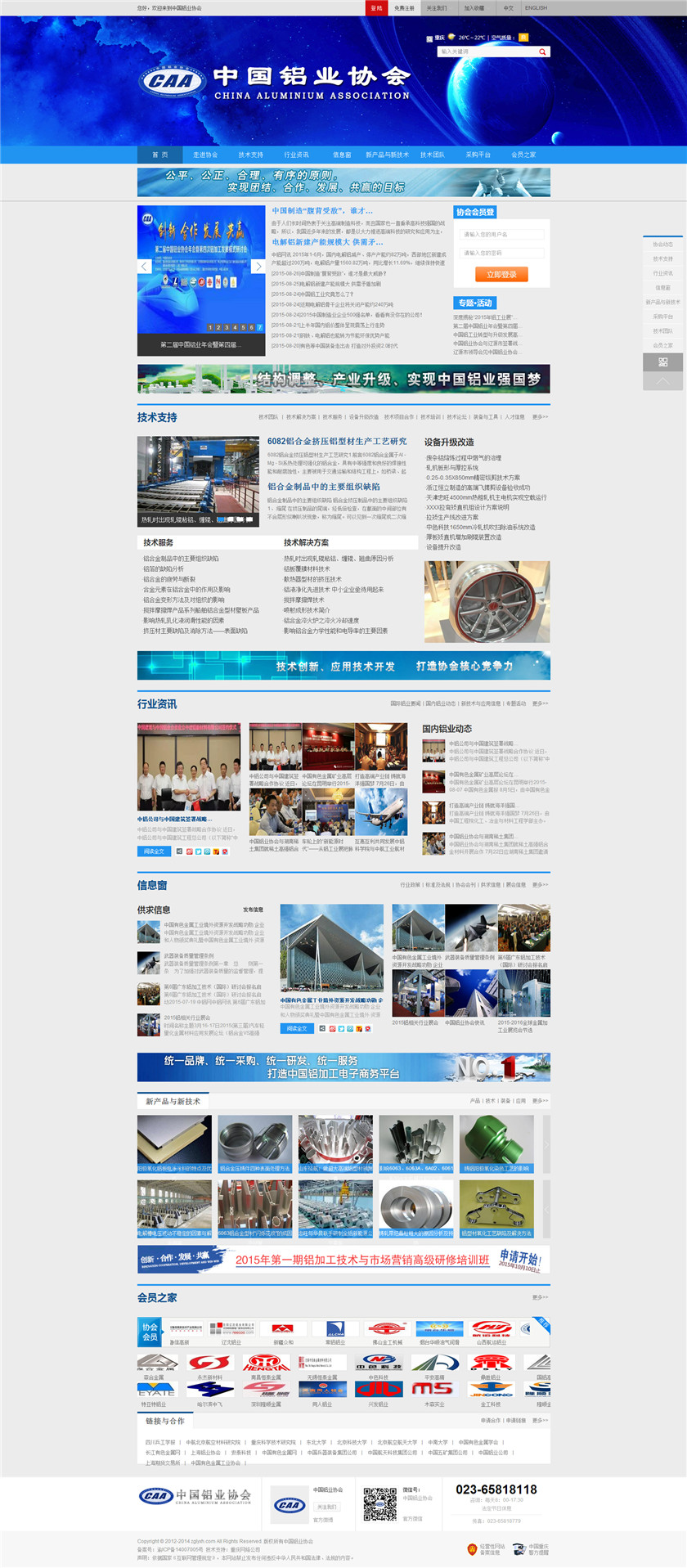 Project Description 中国铝业协会是由中国国内主要从事铝合金铸造、板、带、箔、管、棒、型材、锻件等企业组成的行业协会组织,协会由国内具有一定规模和影响力的企业发起,已有三百多家会员企业,目前还有很多企业踊跃希望加入,协会现有会员企业年销售额1000多亿元人民币,协会会员企业分布在国内华东、华南、西南、环渤海、东北、胶东半岛等中国经济活跃地区;产品涵盖航空航天、兵器装... Official website address 梅州http://www.caa2014.com I want to share